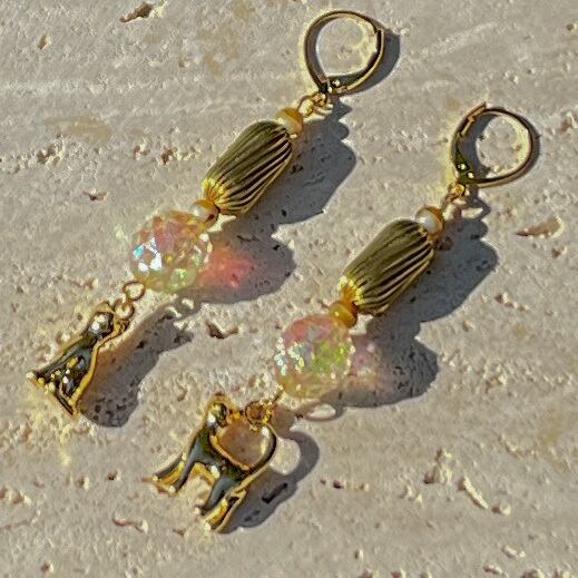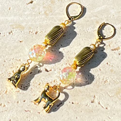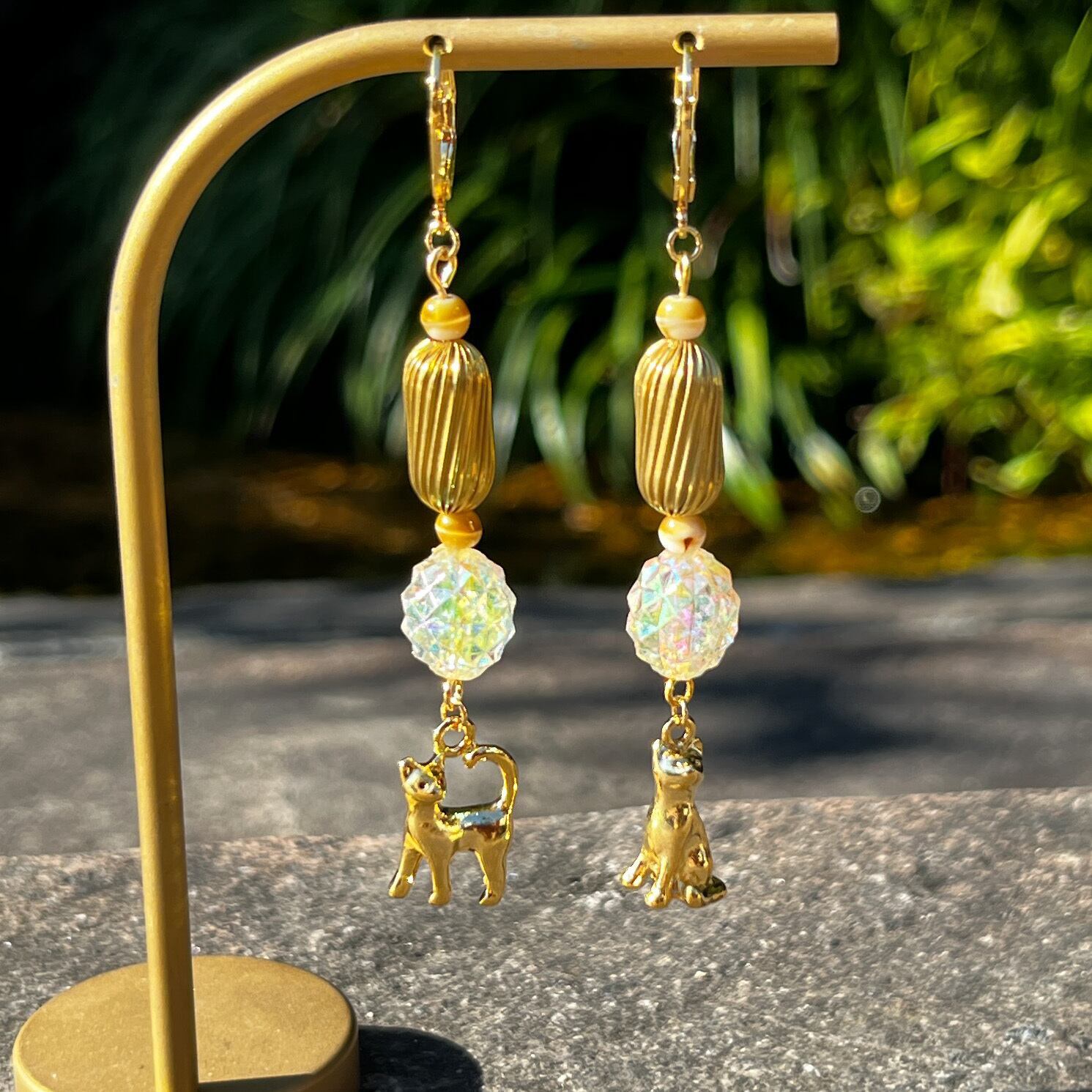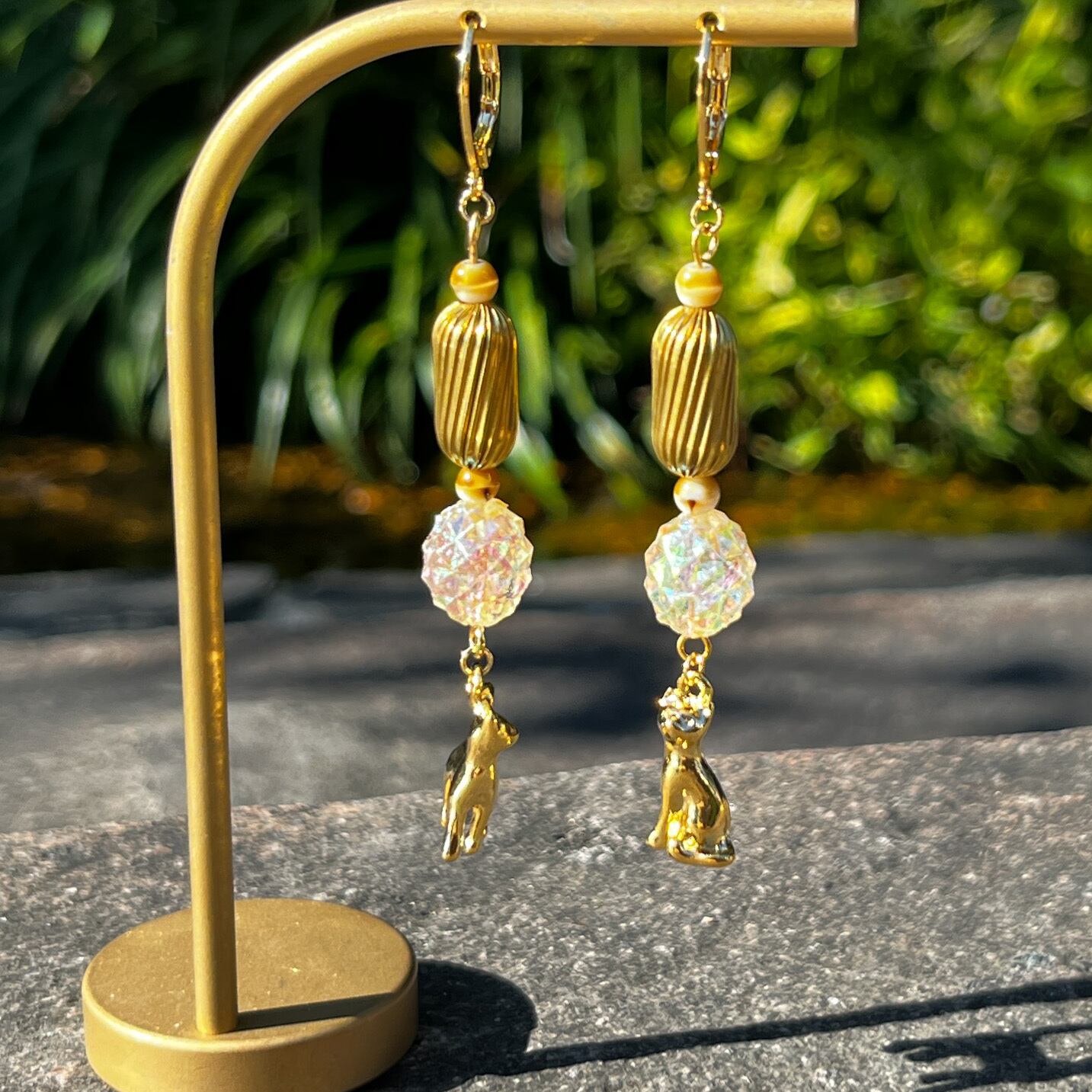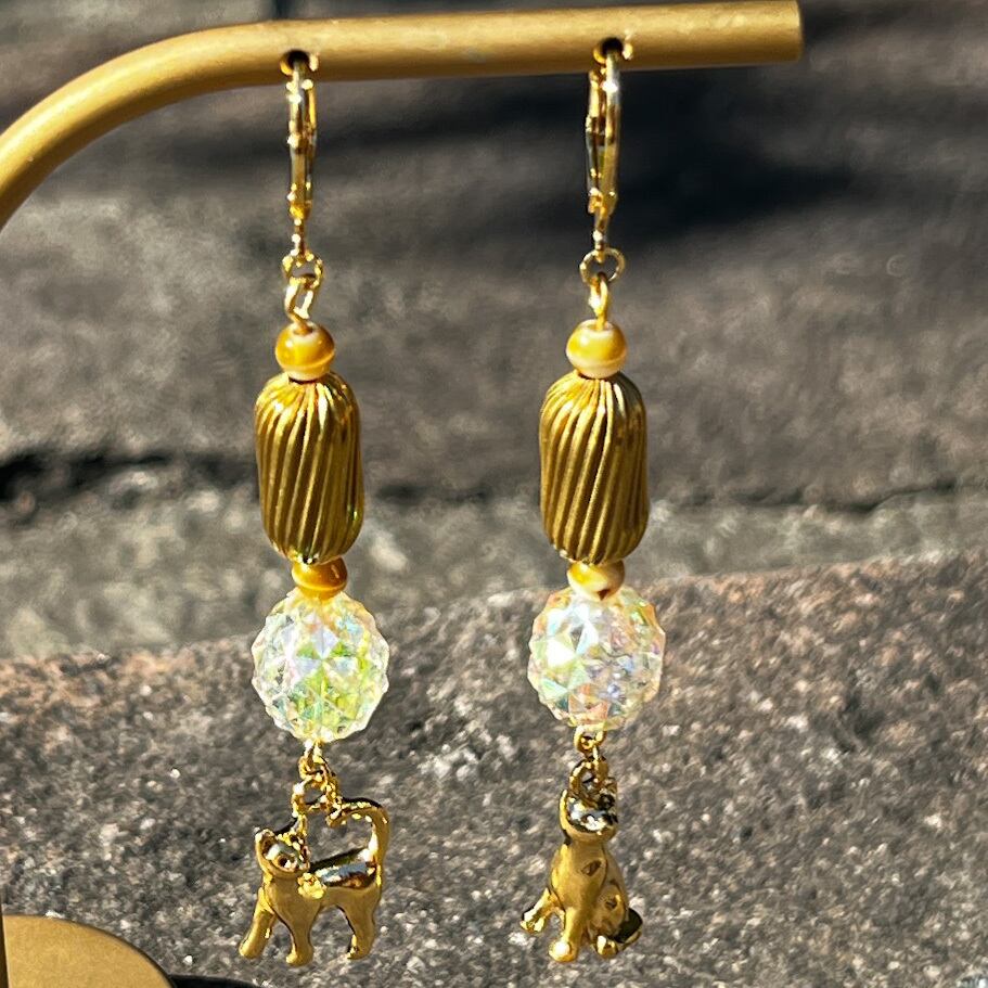 よく見ると猫シリーズ ヴィンテージビーズ ゴールドブラスのロングピアス イヤリング ヴィンテージアクセサリー K16GP