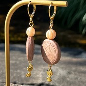 マダラ模様が可愛いブラウンコインビーズとカボチャの様なベージュのヴィンテージビーズの組み合わせ。