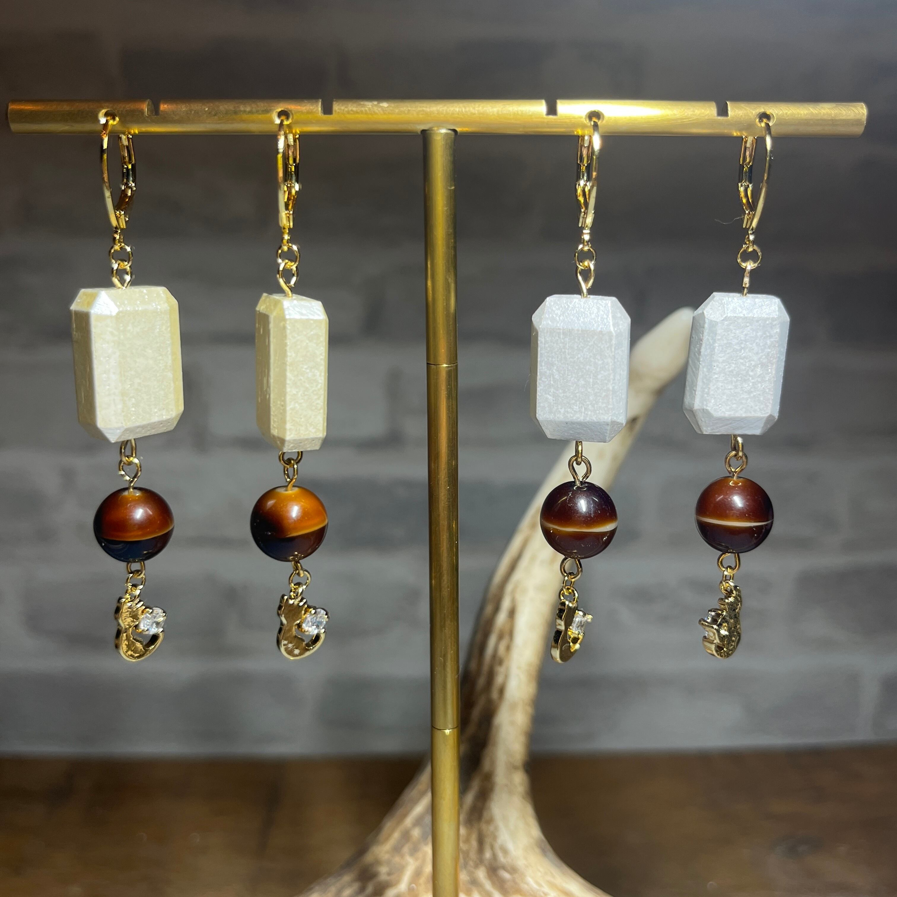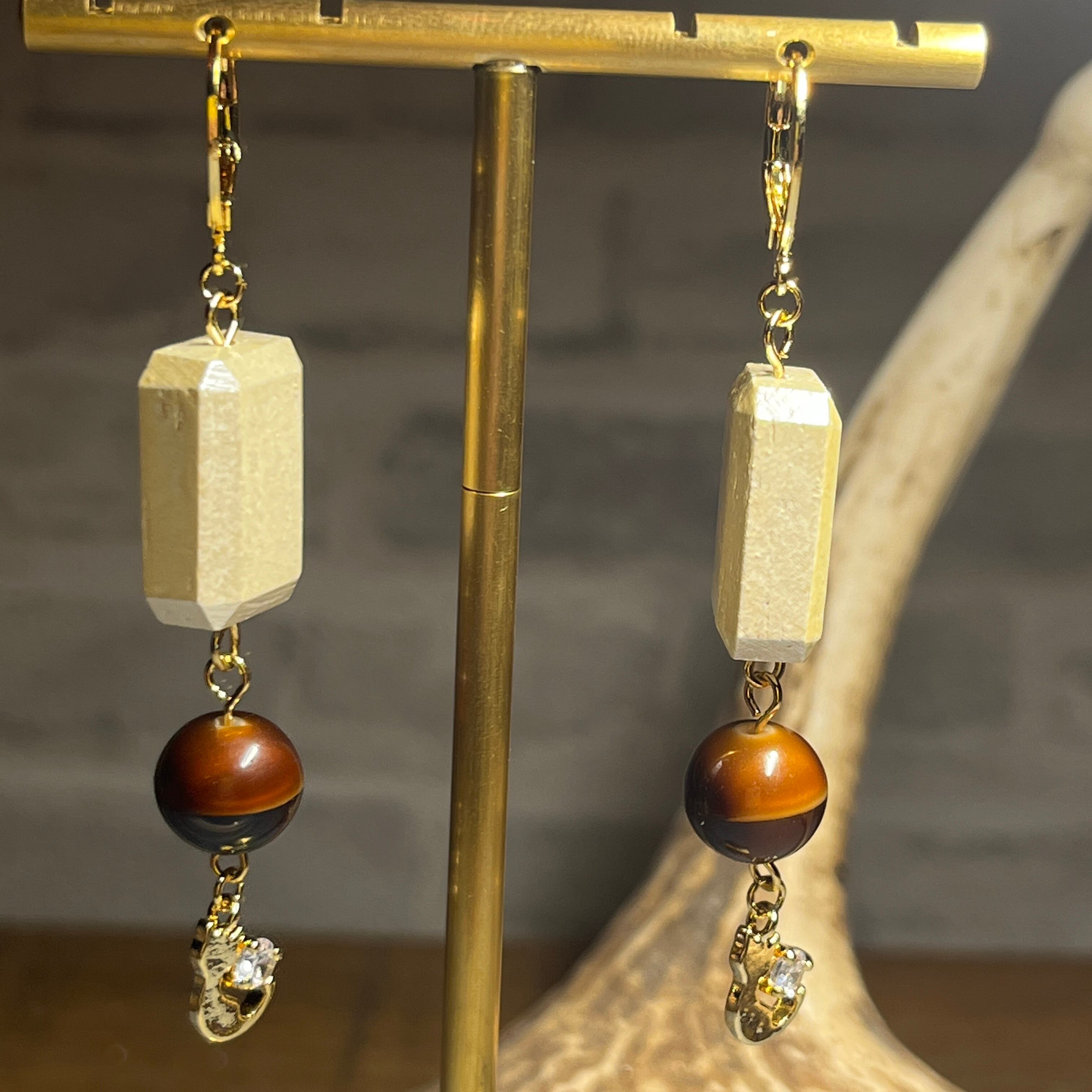 廃盤のウッドビーズとヴィンテージの中央の色がベージュの可愛らしいブラウンビーズを合わせて見ました。