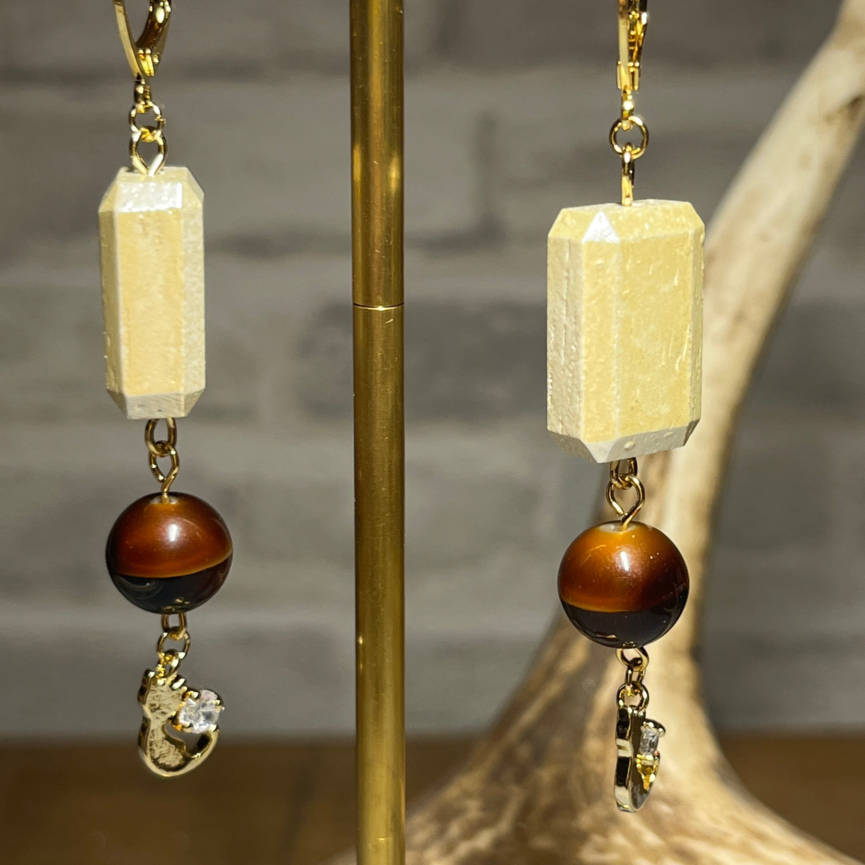 ヴィンテージブラウンビーズ (キスカ)ジルコニアを持った猫 ピアス イヤリング K16gp