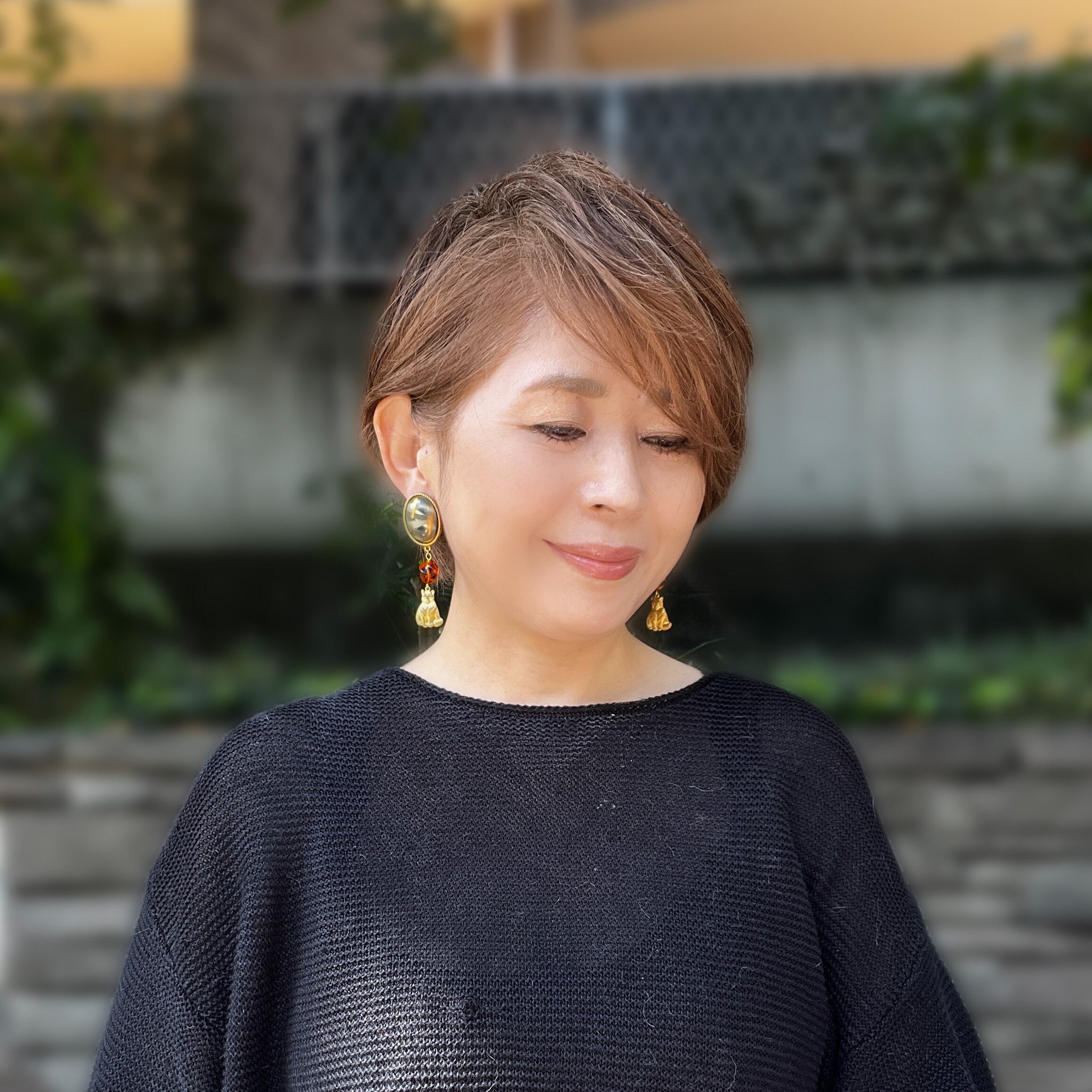 ブラウンビーズが透明感が有るので重たい印象は有りません。