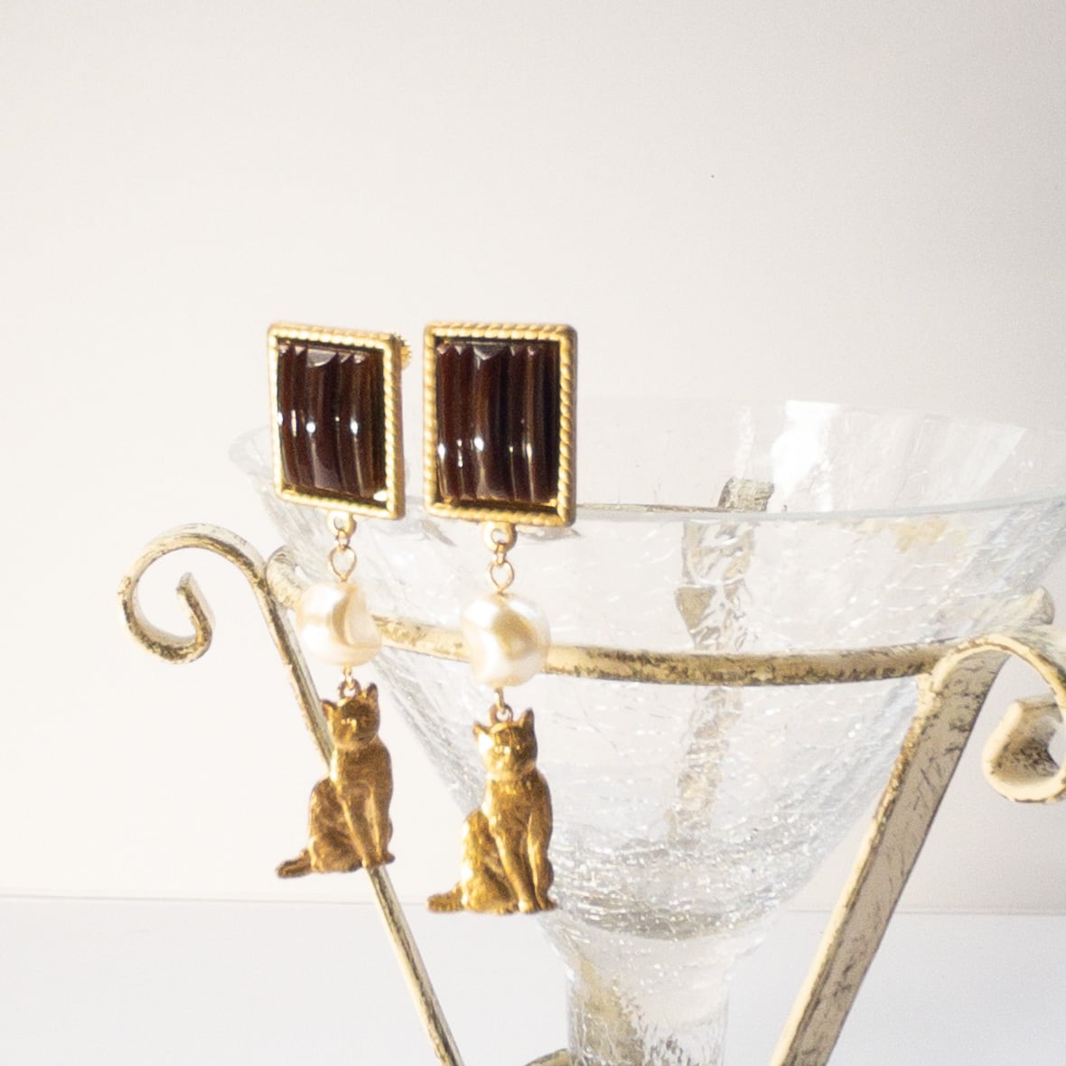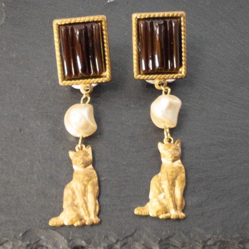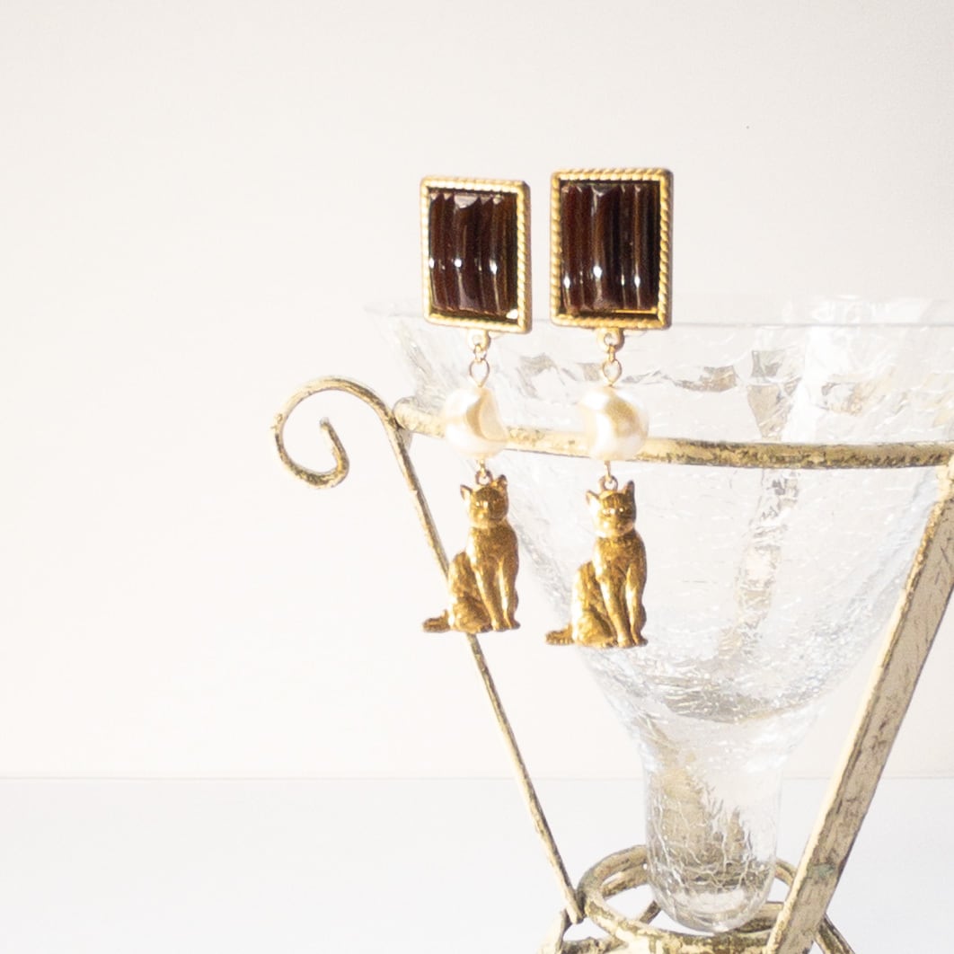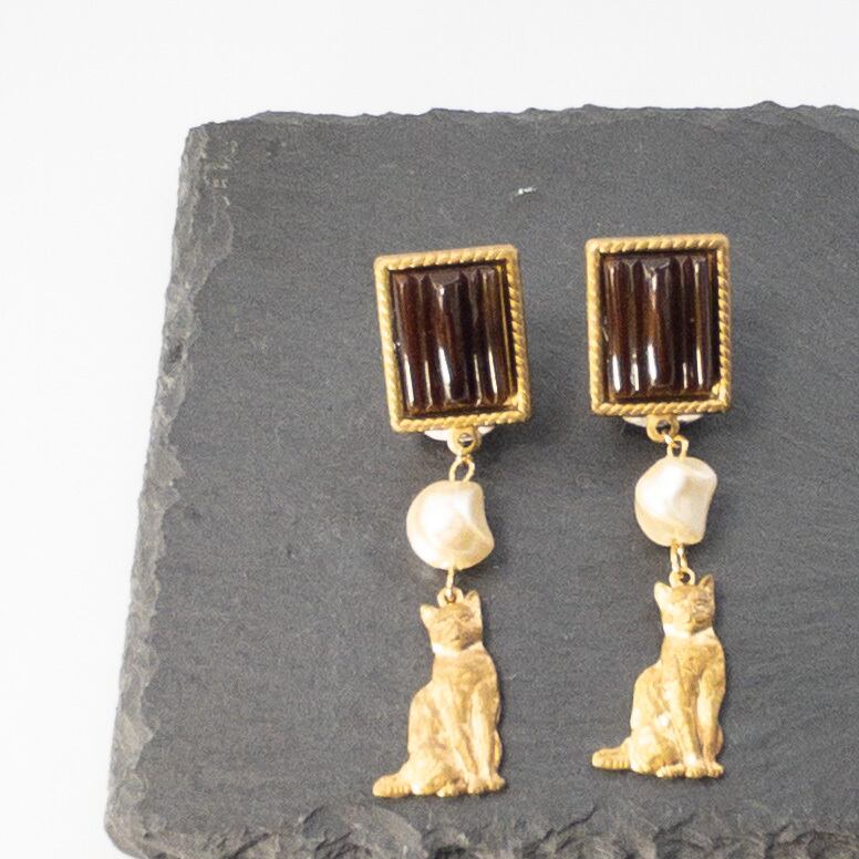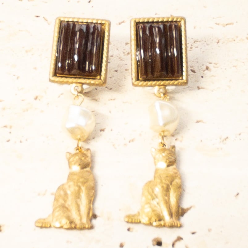 コチラは短毛のお座り猫のイヤリング&ピアスです。