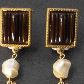 ヴィンテージならではの立体的線の入った焦茶に近い赤茶のバーガンディー色が印象的なカボションえお使用