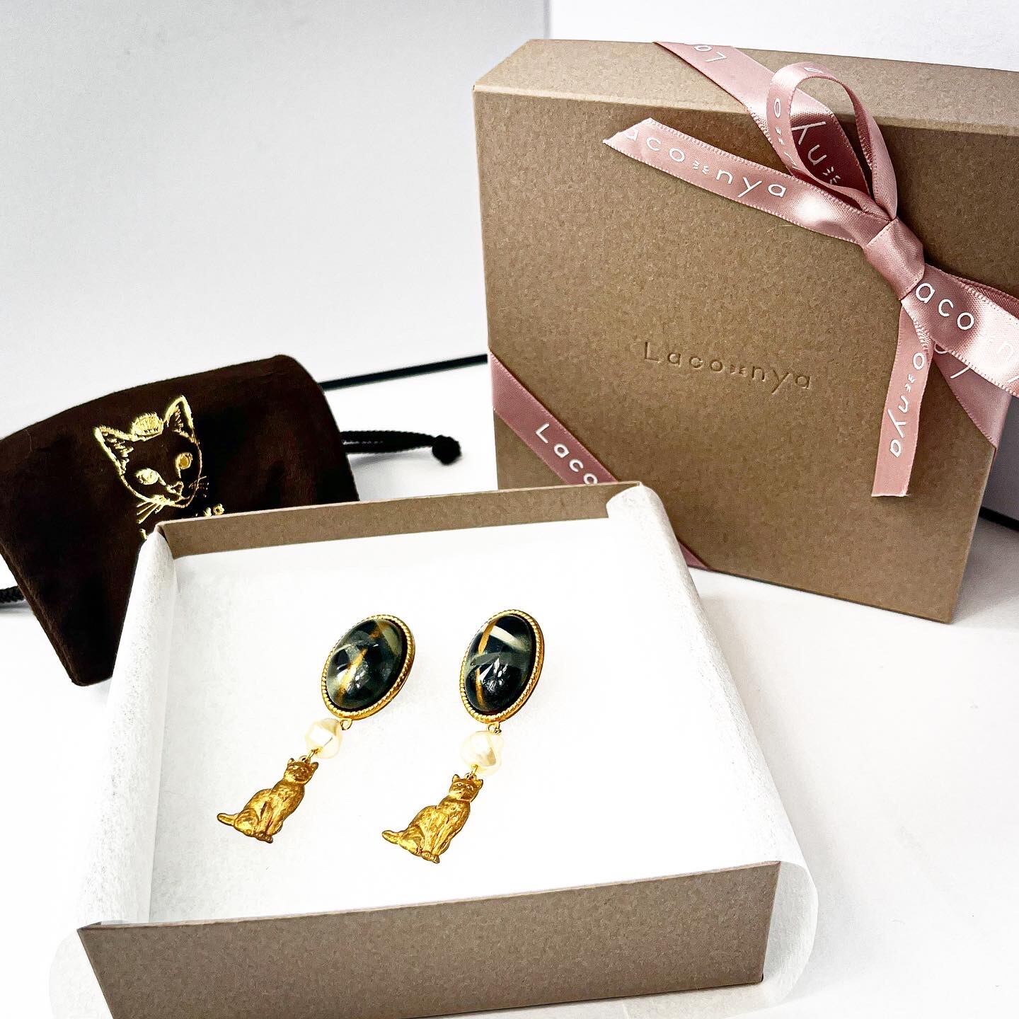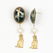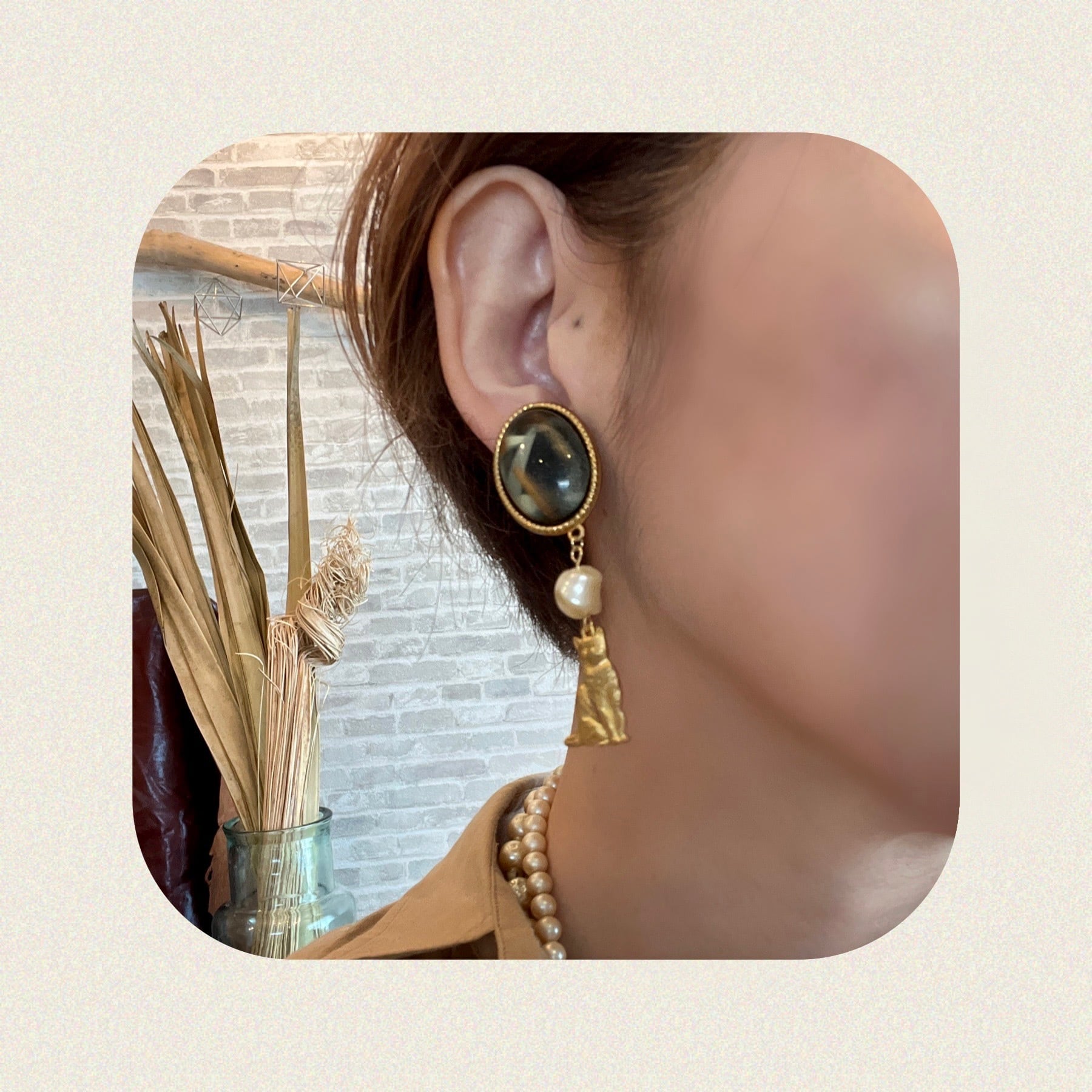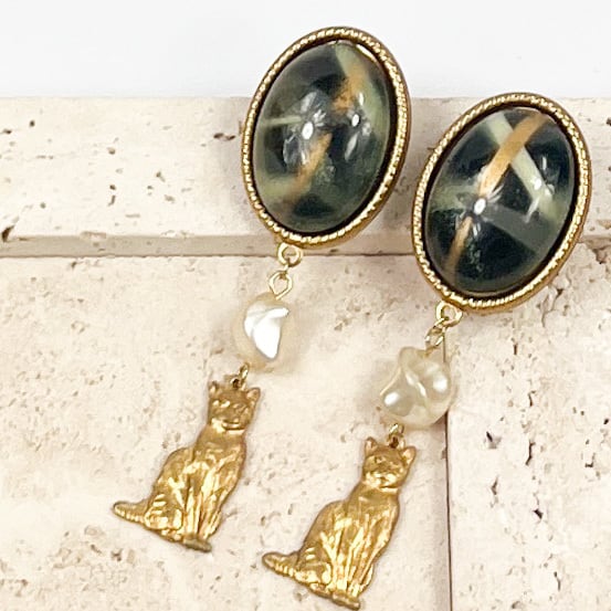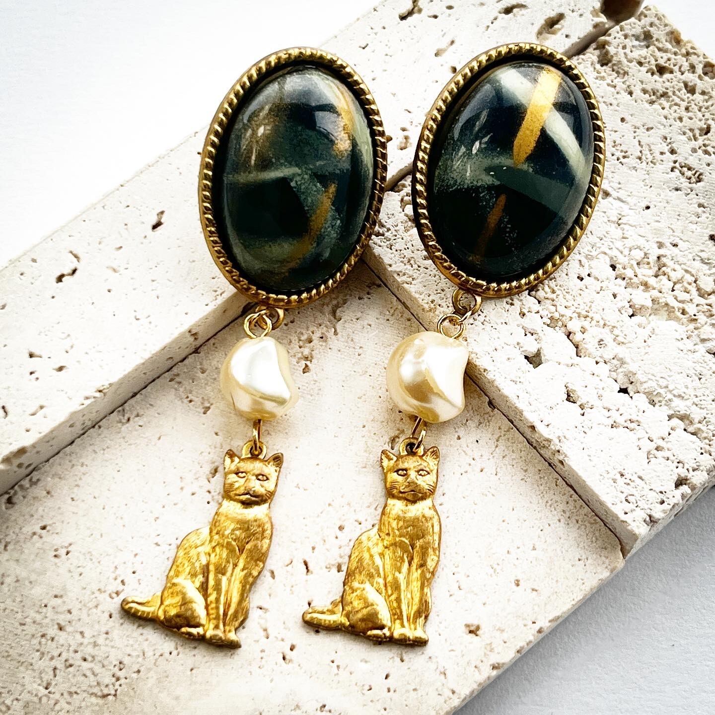 ヴィンテージバロックガラスパールに短毛の真鍮猫を添えました。