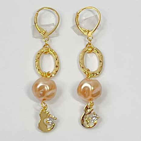 K16gpをふんだんに使い可愛らしい猫ちゃんが揺れるピアスです。